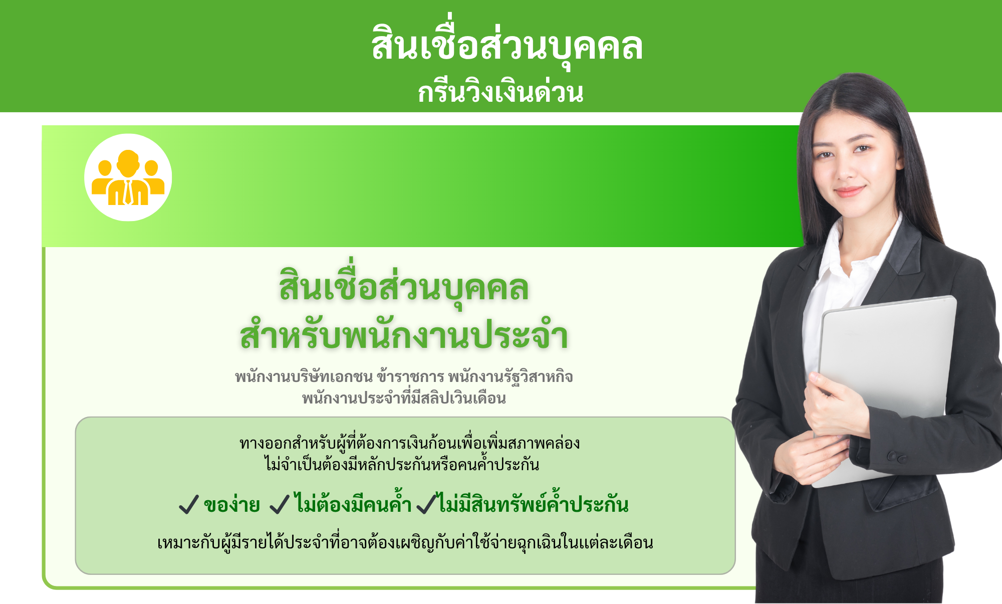 สินเชื่อส่วนบุคคล สำหรับผู้มีรายได้ประจำ