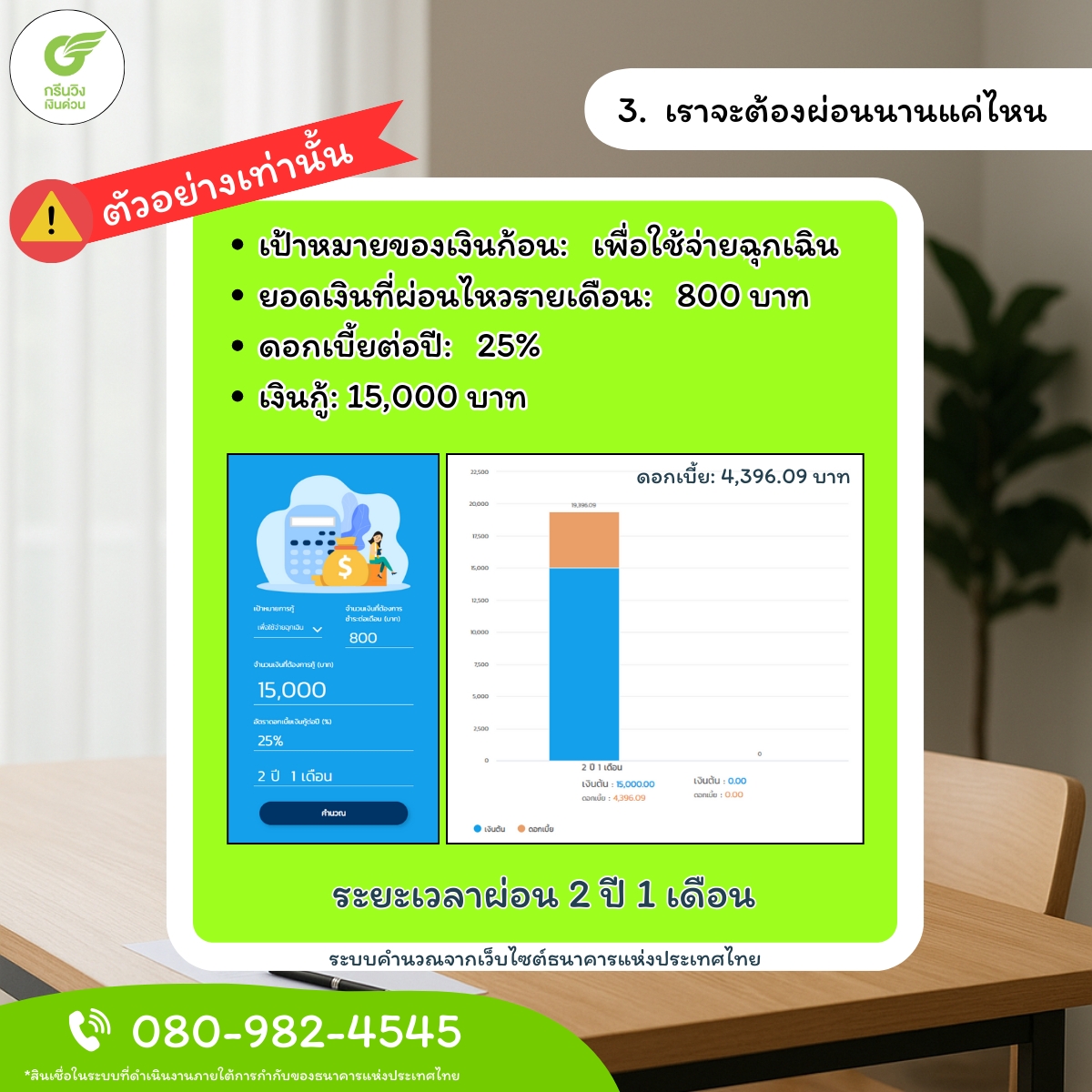 - จำนวนเงินที่ต้องการผ่อนต่อเดือน: ( 800 บาท )