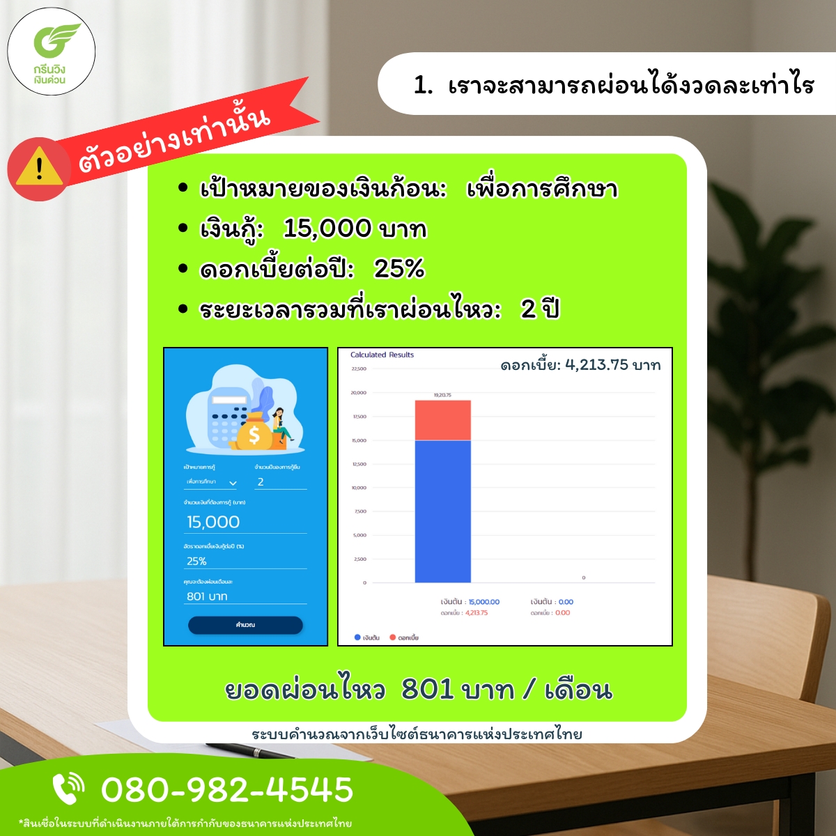 - จำนวนเงินที่ต้องการผ่อนต่อเดือน: ( 800 บาท )