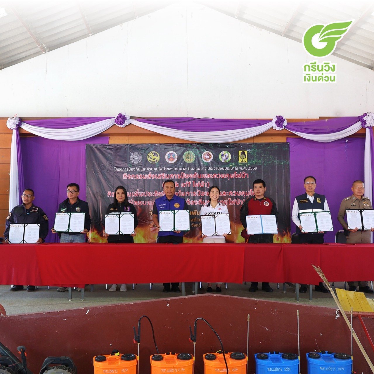กลุ่มบริษัท กรีนวิง และแองเจิลเวย์ ร่วมพิธีลงนาม กิจกรรมส่งเสริมการป้องกัน และควบคุมไฟป่า ประจำปี 2569 เพื่อสนับสนุนการสร้างแนวป้องกันไฟป่า และเฝ้าระวังปัญหาหมอกควันอย่างยั่งยืน ณ เทศบาลตำบลแม่ยาว จังหวัดเชียงราย
