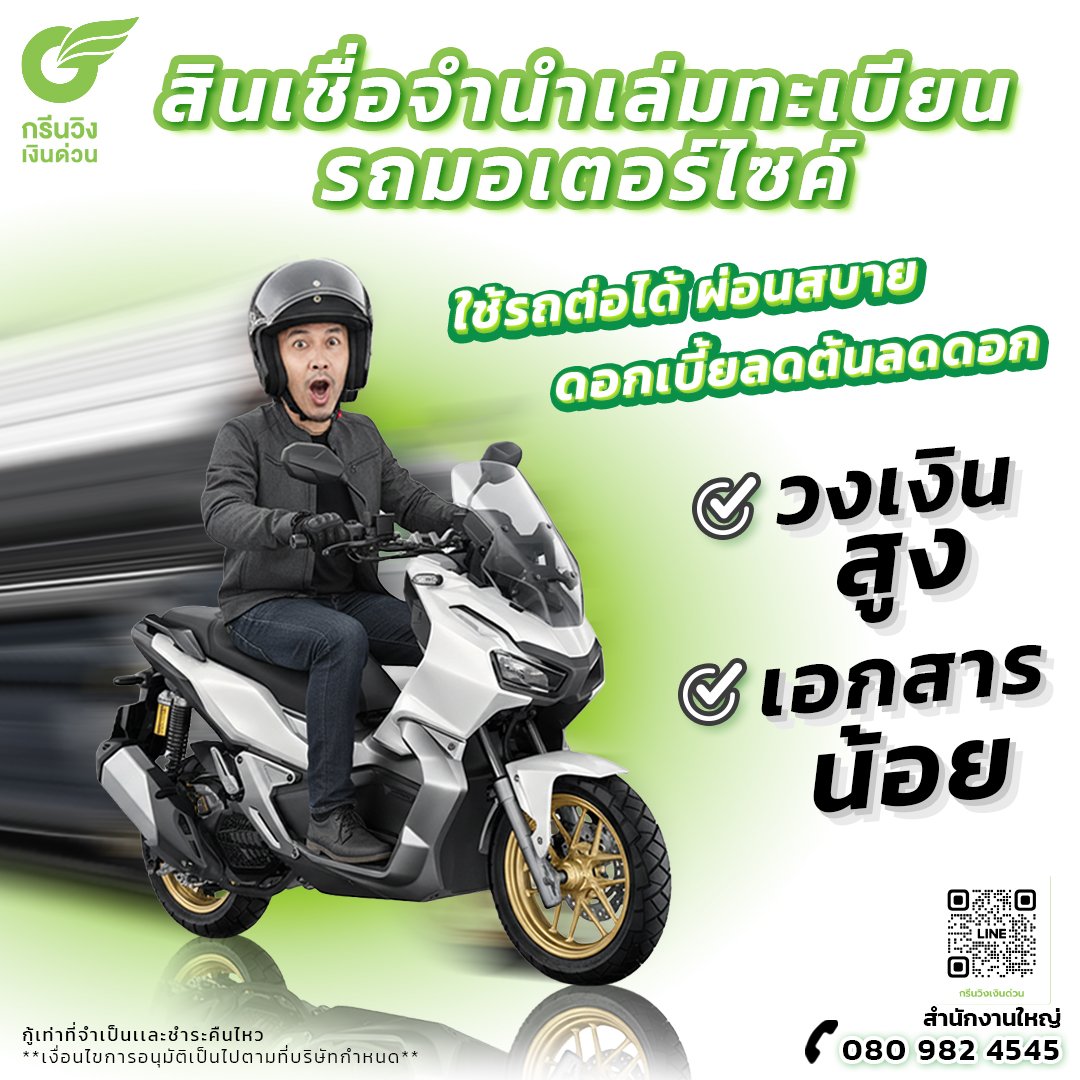 สินเชื่อทะเบียนรถมอเตอร์ไซค์ กรีนวิงเงินด่วน![]()